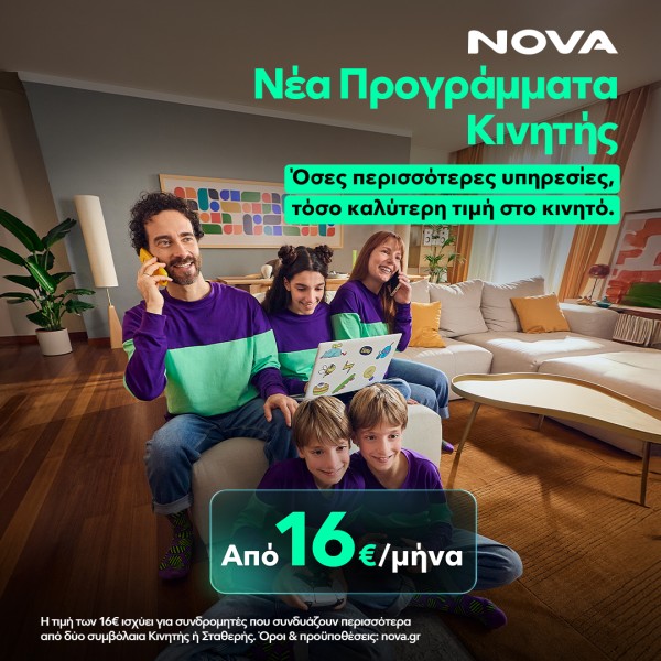 Η Nova σου προσφέρει το νέο πρόγραμμα κινητής Unlimited Ομιλία & SMS + GB, ειδικά σχεδιασμένο για να καλύψει κάθε σου ανάγκη...